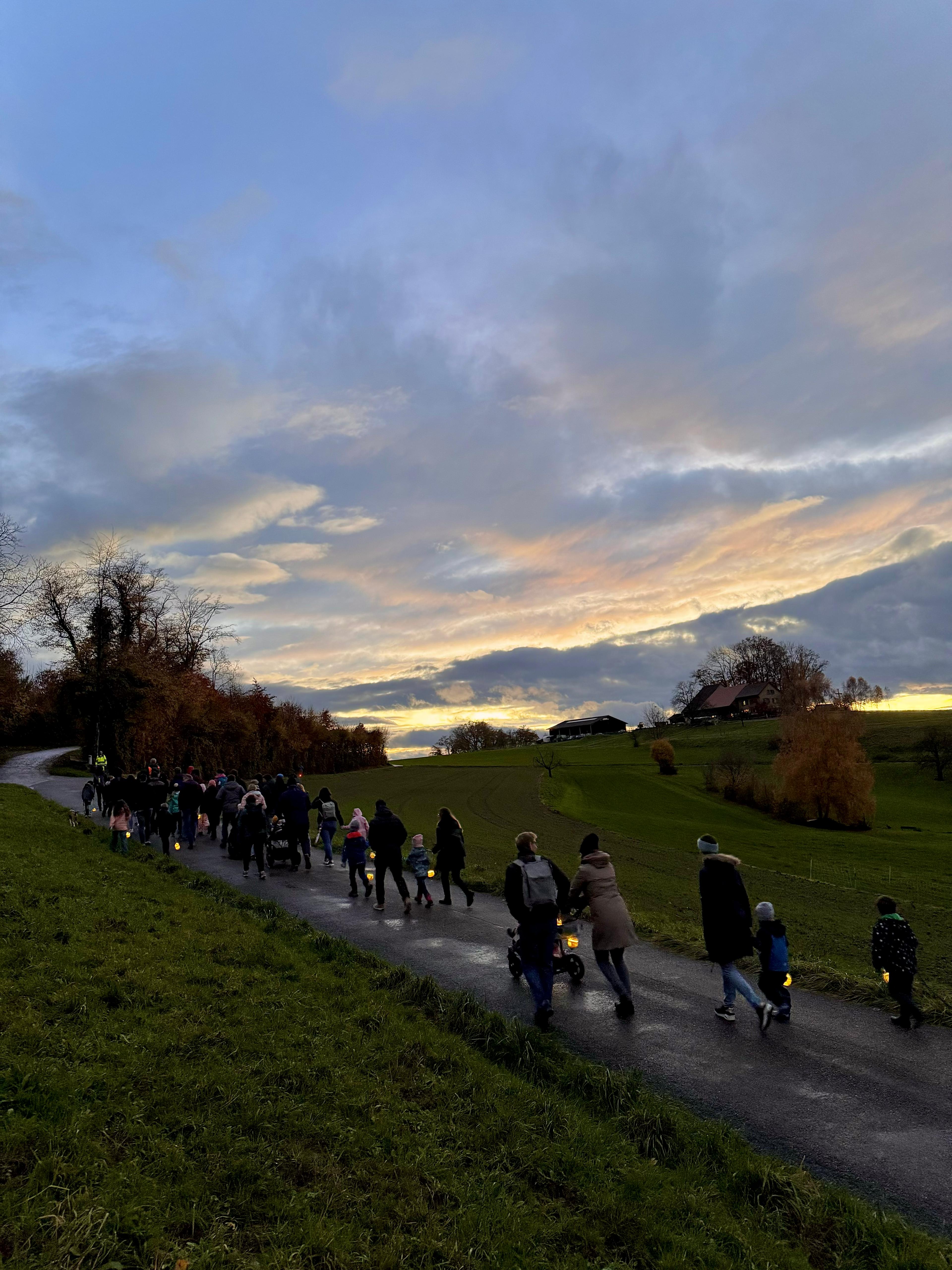 Um den Mittag treffen sich die, die wollen im Gemeindesaal zum Räben schnitzen und Lieder üben. Beim eindunkeln laufen wir los mit unseren Laternen. Anschliessend gibt es warme Verpfleung bei einem gemütlichen Feuer.